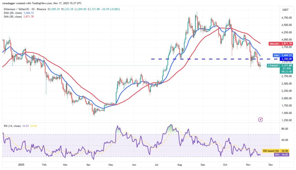 اتریوم زیر سطح شکست 3,350 دلار معامله می‌شود، اما فروشندگان تاکنون نتوانسته‌اند قیمت را به زیر 3,000 دلار بکشانند.