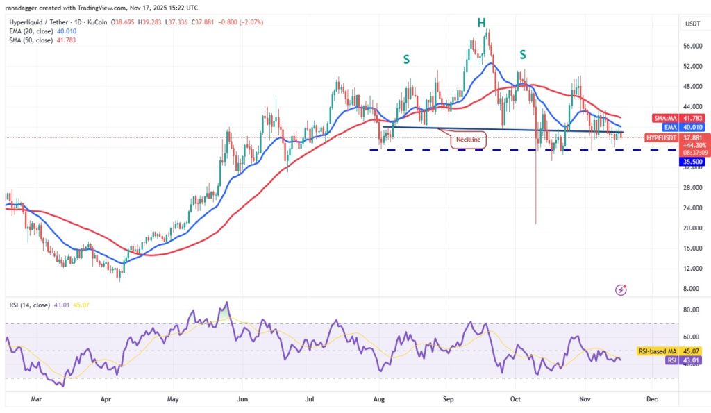 HYPE چند روزی است که بین SMA50 در 41.78 دلار و حمایت 35.50 دلار در نوسان است. این محدودهٔ فشرده معمولاً منجر به یک شکست قوی می‌شود.