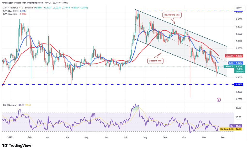 ریپل (XRP) روز شنبه از خط حمایت برگشت، که نشان میدهد گاوها در تلاشند قیمت را در الگوی کانال نزولی نگه دارند.